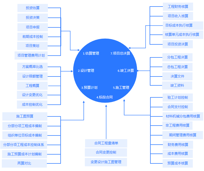 從項目中標(biāo)到工程交付業(yè)主的全過程費(fèi)控(成本)管理,工程總承包合同價款明細(xì),與項目管理、設(shè)計、施工到竣工投產(chǎn)整個過程發(fā)生的建安、設(shè)備、材料等所有費(fèi)用的對比監(jiān)控,現(xiàn)金流、及產(chǎn)值與成本比值等監(jiān)控。注意把握邊界和顆粒度,與項目的工程造價體系(工程估算、概算、預(yù)算、變更、結(jié)算)進(jìn)行區(qū)別;如果客戶需要,專業(yè)模塊可請第三方造價團(tuán)隊共同完成,并提供行業(yè)數(shù)據(jù)庫對接和針對項目的工程造價咨詢服務(wù)。