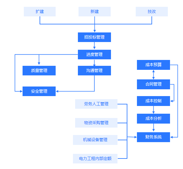 ③適合性——以電力工程的核心業(yè)務(wù)(項目管理)出發(fā)的業(yè)務(wù)方案設(shè)計,根據(jù)項目管理模式設(shè)計信息化解決方案,最貼合電工工程管理的需要。